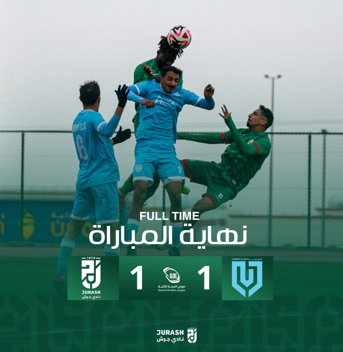 إنتهت مباراة جبة وجرش بالتعادل الإيجابي ١-١